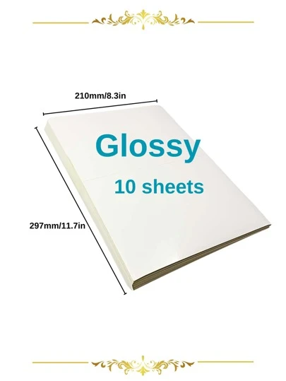 SINMARK 10 张 A4 尺寸 8.3x11.7 英寸光面乙烯基贴纸纸,自粘,适用于喷墨和激光打印机 - 白色 - 查看 1