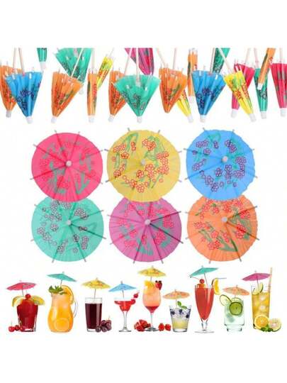 100/70/50/24 支鸡尾酒装饰棒,艺术伞形装饰签,适用于水果、蛋糕、奶茶、咖啡饮料,适合生日、婚礼、户外派对、酒吧和餐厅 - 彩色 - 查看 1