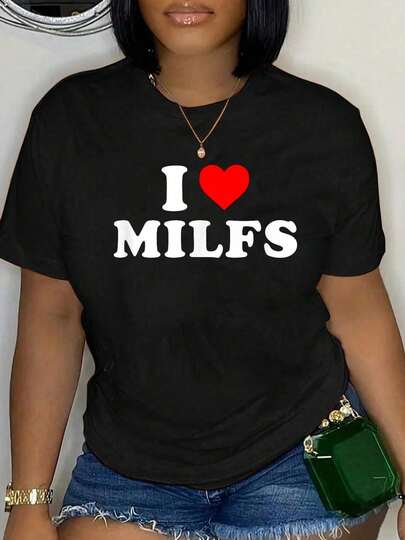 100 Cotton I Love Heart MILFs Day And Mature Womens Funny Shirt T-Shirt Unisex Classic Comfort Tee Tops Oversized Crew N