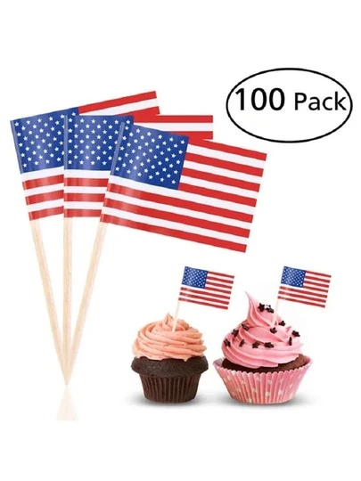 100入組美國國旗牙籤,派對蛋糕裝飾三明治迷你旗幟 - 彩色 - 查看 1