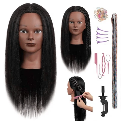 100%真发16英寸模特头训练头,美发师练习编发造型,带夹子支架