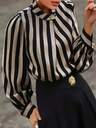 几何图案涤纶中长连衣裙,长袖,纽扣开合,翻领,适合海滩、晚会、办公室、春夏季