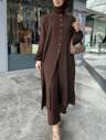 女士优雅缎面连体图案全身印花长袖连衣裙 - 全身优雅高开衩至大腿前部,配有互锁纽扣,适合日常约会、派对、度假、下午茶和正式场合