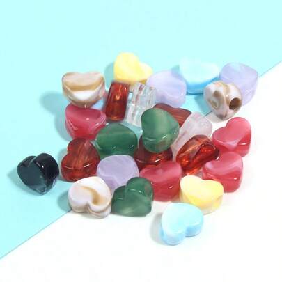 100颗/袋 亚克力混合心形珠子,不透明可堆叠心形隔珠,适用于DIY手机链、手链等饰品制作