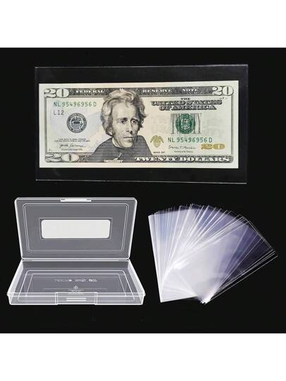 100入組透明紙鈔貨幣收藏袋,配有收納盒,適用於收納美元鈔票,保護貨幣,郵票和優惠券的保護套 - 白色 - 查看 1