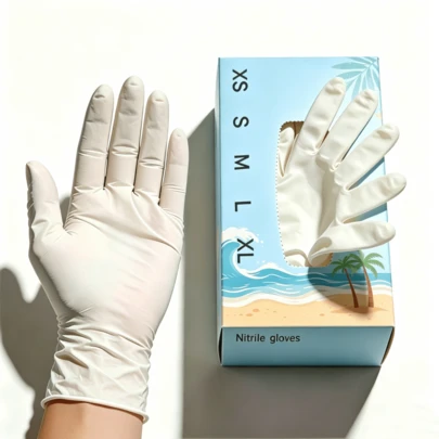 100只一次性白色丁腈检查手套,不含乳胶,无粉,适用于沙龙清洁