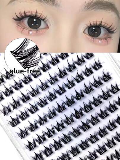 100片自然柔软假睫毛,无需胶水,适合初学者,可爱卡通宠物睫毛,三段式C型卷翘假睫毛,睫毛簇,单根假睫毛,假睫毛 - 黑色 - 查看 10