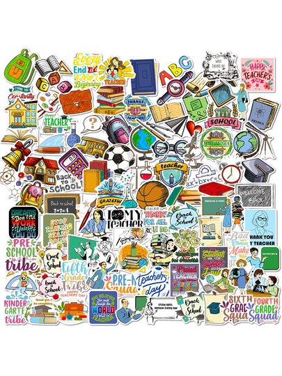 100入組/套卡通圖案貼紙,簡約風教室電腦剪貼簿塗鴉貼紙 - 彩色 - 查看 1