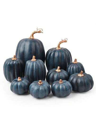 10 件秋季人造南瓜各种尺寸泡沫丰收南瓜适用于万圣节感恩节丰收节派对装饰农舍壁炉餐桌家居装饰 - 感恩南瓜10p-深藍 - 查看 1