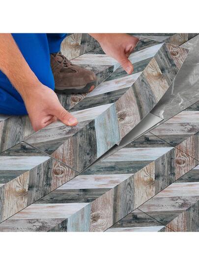 10入組仿木紋拼貼地板貼紙,加厚磨砂離子覆膜防水防滑地磚貼紙,自粘裝修裝飾復古木紋家居裝飾壁紙15*40cm - 彩色 - 查看 5