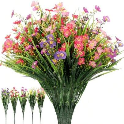 10支/24支户外人造花,抗紫外线仿真野花,适用于花园、门廊、窗台、花箱,混合彩色仿真塑料植物,DIY家居桌面装饰套装 - 彩色 - 查看 5