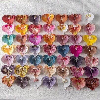 10支仿真花,假花,婚礼用花,仿蝴蝶兰花头,逼真DIY花束,适用于婚礼餐桌中心装饰、家居装饰、房间装饰、卧室装饰、花园装饰、婚礼新娘送礼会等场合,仿真植物