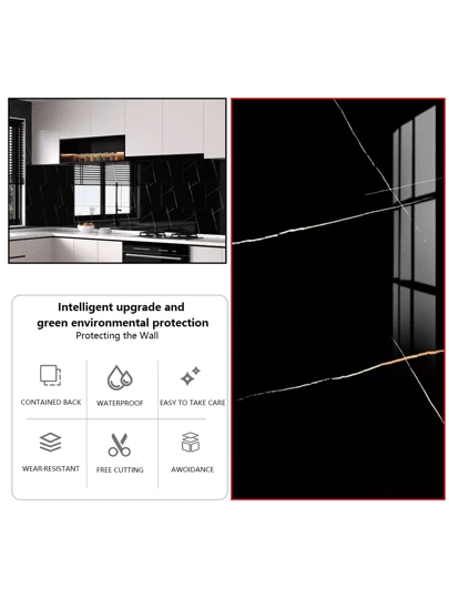 10X PVC 大理石瓷砖墙贴自粘式厨房浴室装饰+浴室地毯秋季装饰浴室配件 - 黑色 - 查看 5