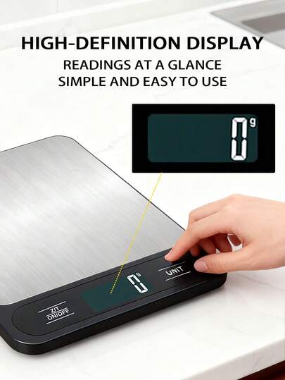 10公斤高精度厨房秤,易于清洁的ABS平台,LCD数字显示屏,去皮功能和单位转换,适用于烘焙、烹饪、生酮饮食、备餐、咖啡制作,黑白两色可选,电池供电(不含电池) - 彩色 - 查看 11