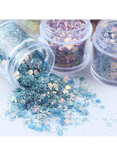 10毫升全息炫彩闪粉罐 | 闪亮闪粉,适用于美甲和树脂DIY | 多种颜色可选 | 可用于手机壳/记事本/蜡烛装饰 | 派对和庆典DIY - 彩色 - 查看 3