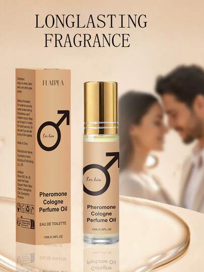 10毫升/0.34液盎司男士费洛蒙香水滚珠瓶,金色Logo,便携设计,适合旅行、日常、约会、派对等场合,引人注目,专属男士礼品