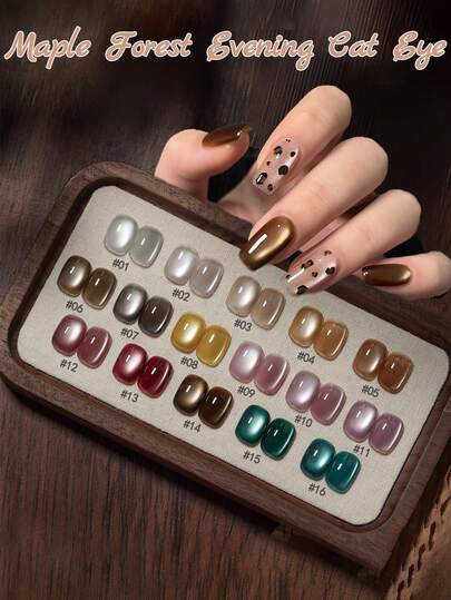 10ml圣诞美甲高级枫林猫眼凝胶指甲油2025夏秋流行显白美拉德金棕色玻璃珠透明无尘细磁粉猫眼美甲美甲用品绿指甲红指甲 - 彩色 - 查看 12