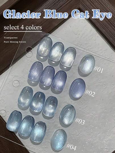 10毫升春夏新款超闪亮冰晶透明冰川蓝水晶石玻璃珠猫眼凝胶指甲油水晶透明蓝紫色凝胶美白多功能美甲用品蓝色美甲 - 彩色 - 查看 6