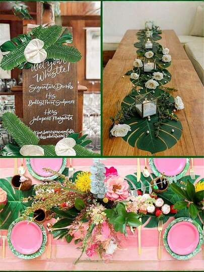 6. 10片人造热带棕榈叶,适用于夏威夷草裙舞派对、丛林主题派对装饰、夏季婚礼、生日、家居、餐桌摆设、仿真植物、斋月装饰、房间装饰、斋月装饰、家居装饰、浴室装饰
