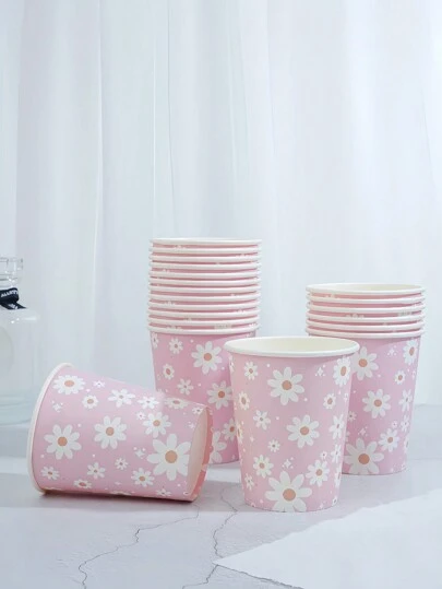 10pcs/25pcs粉色花卉主题一次性纸杯,9盎司/250毫升纸杯,一次性饮料杯,生日派对一次性咖啡杯,适用于各种派对、婚礼、家庭、办公室、饮料杯、冷饮杯、热茶杯、咖啡杯、餐杯、生日派对用品及配件