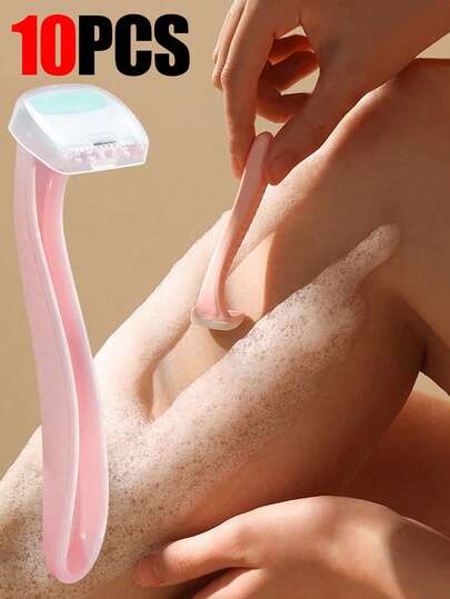10 件女性比基尼修剪器,温和美容师,防水干湿两用剃须刀,比基尼、腿部、腋下、面部和身体毛发去除器,钢制剃须刀,剃须和修剪私密部位的理想选择 - 粉色 - 查看 10