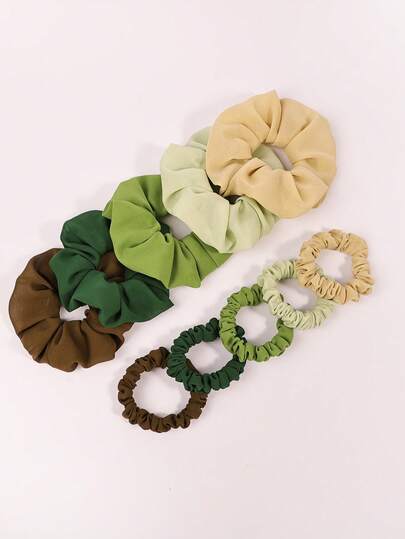 10个/套柔软雪纺发圈套装,草绿色,舒适百搭,简约休闲设计,高弹力马尾发圈,适合春夏佩戴。 - 彩色 - 查看 6