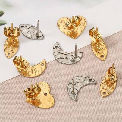 10个不锈钢眼睛形状耳钉,带耳塞,DIY珠宝制作配件耳环组件 - 彩色 - 查看 1