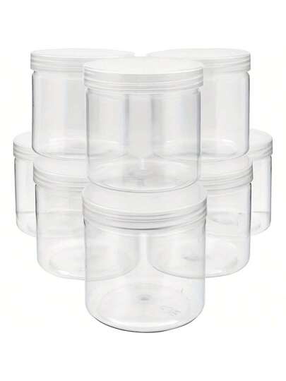 10/5个透明塑料罐带盖,圆形容器,适用于史莱姆收纳、DIY工艺品收纳、珠宝样品配件整理 - 白色 - 查看 1