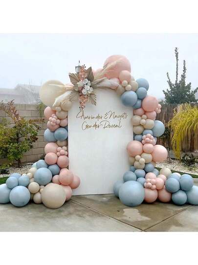 115件套性别揭晓气球花环套装,粉色和蓝色气球,灰色和白色,适用于性别揭晓派对、迎婴派对、生日派对装饰 - 淡藍色淡粉紅色 - 查看 1