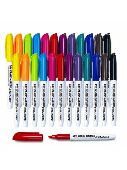 12/24支装低气味细头白板笔,12种颜色,细头彩色马克笔 - 彩色 - 查看 12