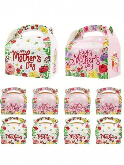 12/8/5件装母亲节鲜花礼盒 - 饰有“母亲节快乐”字样,包含玫瑰、纸杯蛋糕和五彩纸屑 - 是派对装饰和庆祝活动的理想用品,礼盒 | 五彩纸屑装饰 | 装饰糖果盒