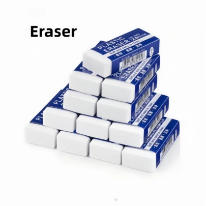 12支装白色塑料橡皮擦,柔软耐用,学生必备,学校及课堂用品 - 長方形 - 查看 5