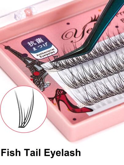 yelix 120 簇预制鱼尾形假睫毛漫画睫毛自嫁接 DIY 簇状浓密燕尾睫毛 0.07C 卷翘睫毛簇、睫毛簇、单根睫毛、睫毛、假睫毛 - 黑色 - 查看 1