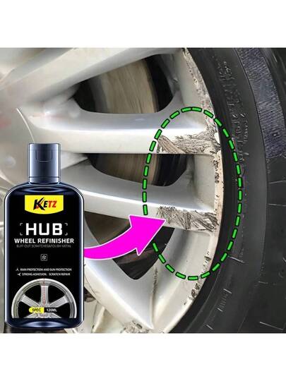 120ml 汽车轮毂划痕修复套装,车轮修补抛光剂,车轮划痕、锈迹、褪色去除剂,恢复金属光泽,车轮护理蜡 - 120ml - 查看 6