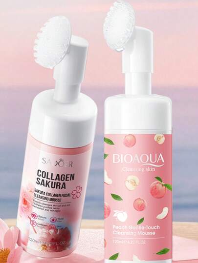 120毫升樱花胶原蛋白/蜜桃洁面慕斯,丰富泡沫,温和清洁并去除角质,面部清洁慕斯