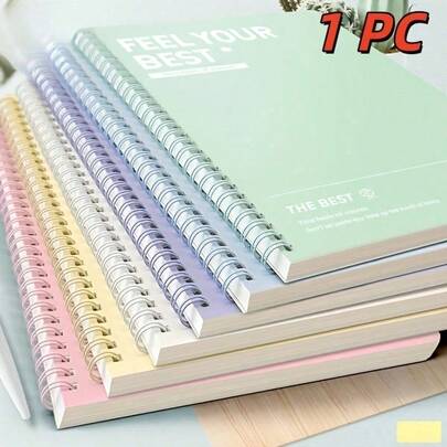 122页A5螺旋笔记本,白色卡纸封面,简约硬面,可撕页,多种颜色可选,适用于办公、学习、日记,封面设计励志,装订牢固,书写流畅,办公必备