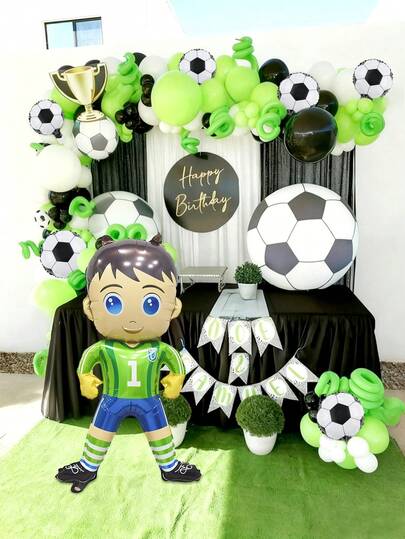 124件/套足球派对气球装饰套装,包含10英寸足球造型气球、站立式足球守门员卡通铝箔气球、黑色、白色、绿色乳胶气球,适用于足球比赛、生日派对装饰、足球主题派对、家居装饰、拍照道具、足球游戏派对等场合。 - 彩色 - 查看 1