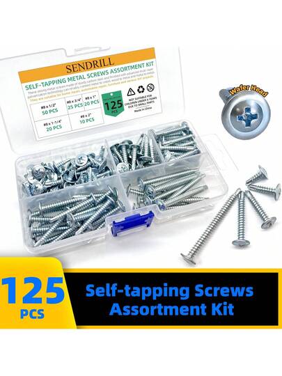 1入組125件鍍鋅自攻螺絲五種尺寸套件,適用於金屬木材和塑膠板的薄板螺絲
