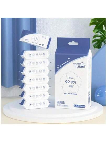 128片/64片/32片/16片/8片可冲厕湿巾,可溶解材质不会堵塞马桶,实用旅行装(8片/袋) - 彩色 - 查看 8