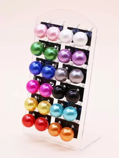 12入組隨機顏色時尚假珍珠耳針,適用於女性日常裝飾 - 彩色 - 查看 1