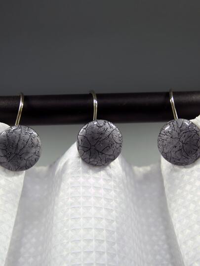 12入組ABS浴簾掛鉤現代圓形大理石圖案家用浴簾掛鉤 - 深灰色 - 查看 1