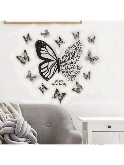 12入組創意蝴蝶牆貼,蝴蝶花卉圖案自粘牆貼,臥室/玄關/客廳/門廊居家裝飾牆貼,壁貼裝飾 - 黑與白 - 查看 1