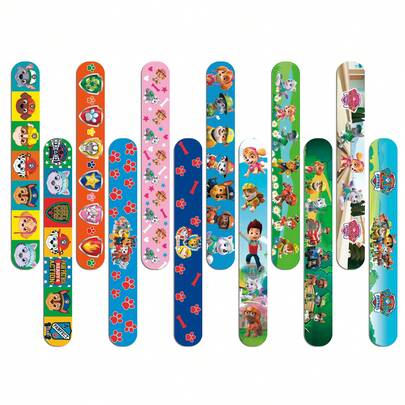 12个卡通拍拍手环,印有莱德和小狗图案,是完美的派对用品和节日礼物,适合男孩女孩,款式随机。