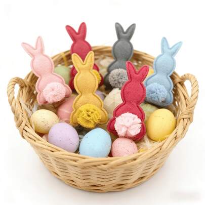 12件套彩色复活节兔子装饰套装,适用于发饰DIY、服装和包包装饰、派对装饰和手工项目,复活节派对用品,节日手工材料,兔子装饰品 - 彩色 - 查看 8