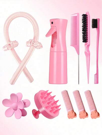 12件套卷发造型套装,包含免加热卷发棒和发圈,可打造柔和自然的卷发和波浪,轻松实现隔夜卷发,附赠连续喷雾瓶(6.8盎司/200毫升),适合成人和女孩使用。 - 彩色 - 查看 8