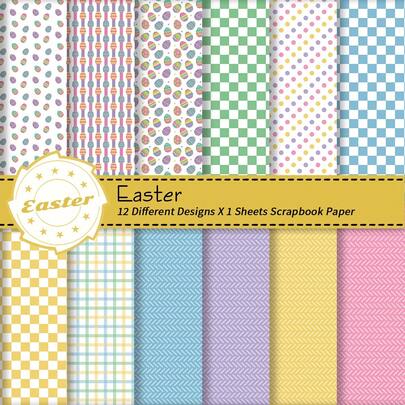 12张复活节主题剪贴簿纸 - 粉彩格子线条和彩蛋设计装饰工艺纸,适用于日记、折纸、卡片制作和派对装饰,剪贴簿用品 - 彩色 - 查看 1