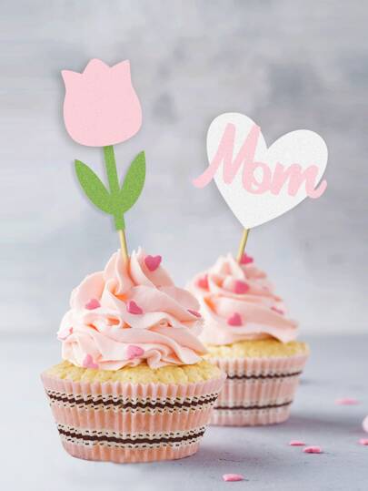 12 件心形“妈妈”和玫瑰花母亲节蛋糕装饰,2 种款式,每种 6 件,共 12 件/包,母亲节快乐派对蛋糕装饰 - 彩色 - 查看 3