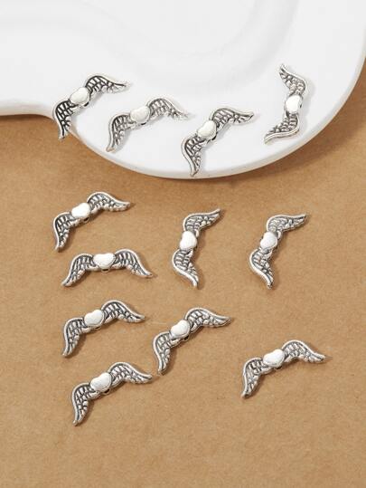 12入組翅膀和心形DIY釘珠 - 銀色 - 查看 1