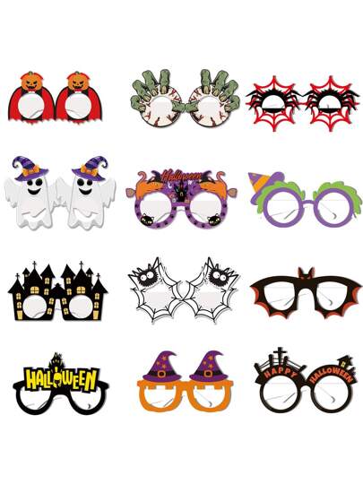 12入組/套萬聖節派對紙眼鏡,搞笑打扮道具 - 彩色 - 查看 6