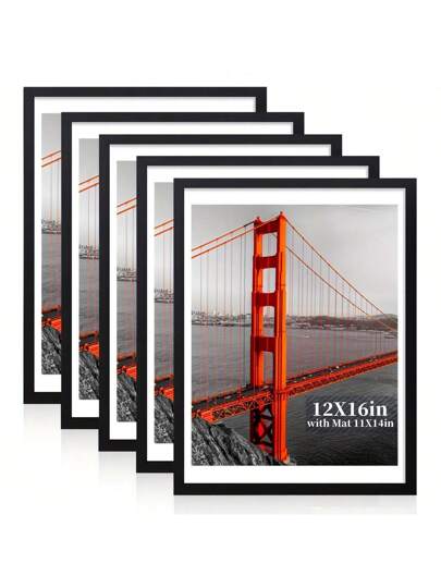 5/3/2/1入組12x16英寸黑木畫框,可展示11x14英寸帶襯板或12x16英寸不帶襯板的照片,適用於牆壁相片畫廊,可橫向或縱向掛起,襯板隨機發貨,不包括照片紙 - 黑色 - 查看 5